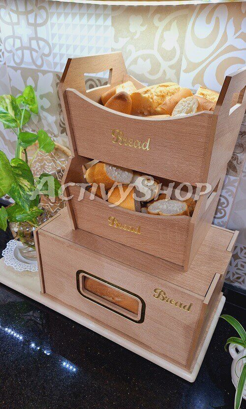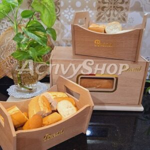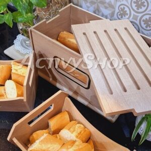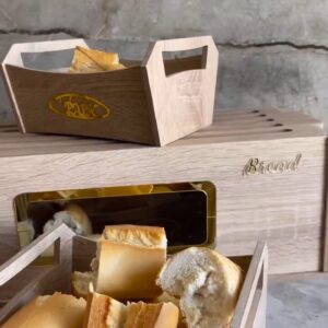 صندوق خبز خشبي + سلتين(2) – تصميم أنيق وجودة عالية